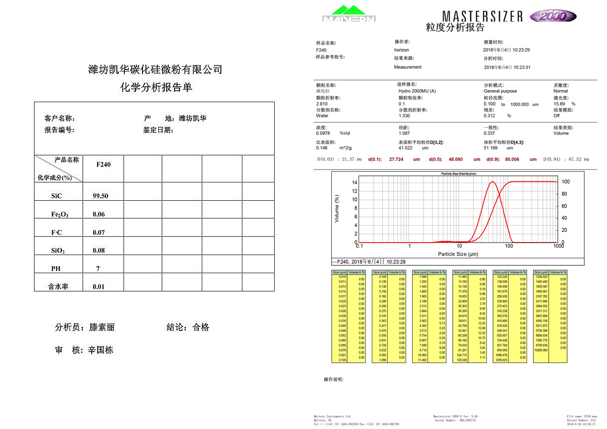我公司生產(chǎn)的F240、F1200、W20、W14、#90、#150等反應(yīng)燒結(jié)專用碳化硅微粉,主要用于反應(yīng)燒結(jié)碳化硅制品注漿成型、擠出成型領(lǐng)域,以其流動(dòng)性好、純度高、粒型好、粒度分布合理、堆積密度大等優(yōu)點(diǎn),深受客戶好評(píng)!